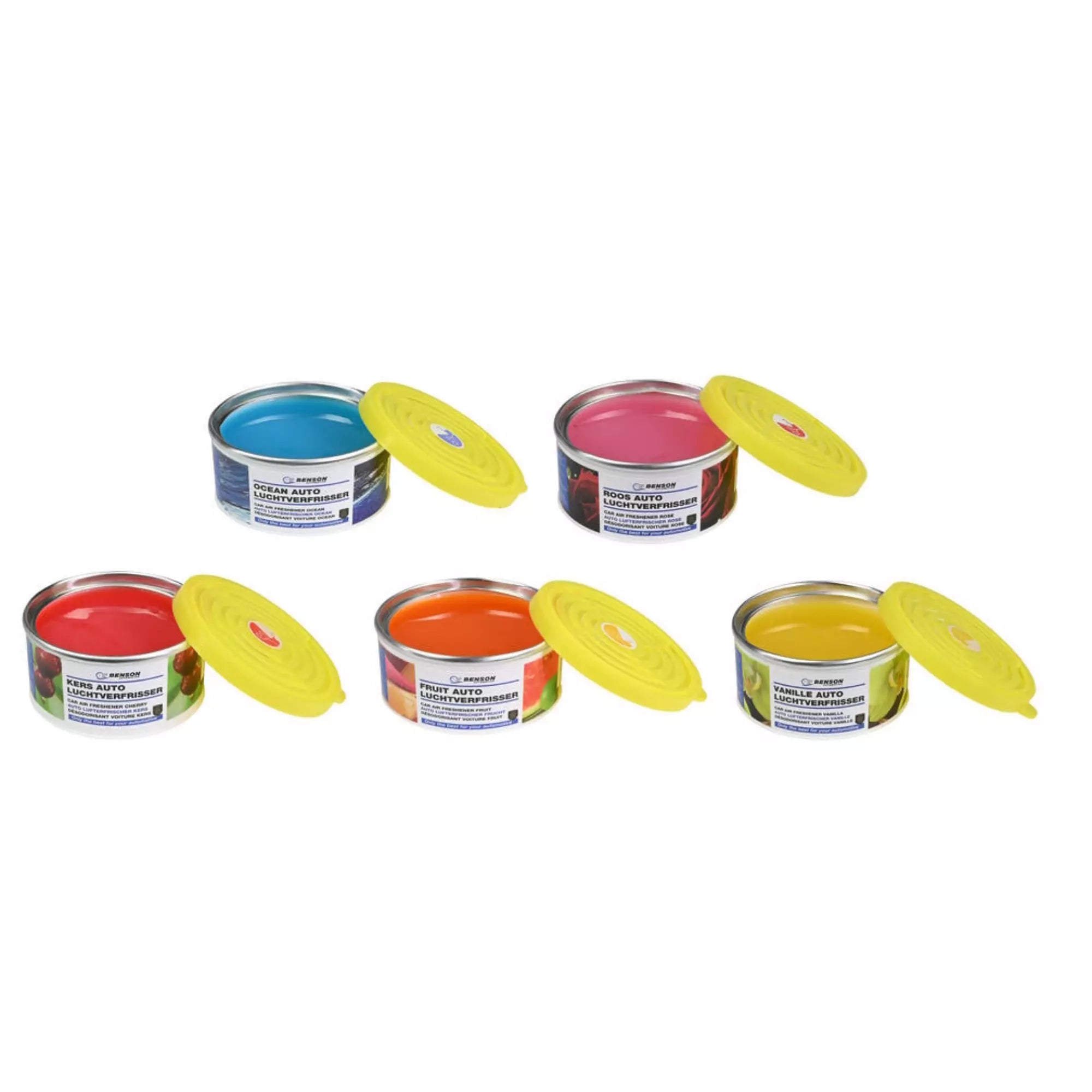 Set van diverse auto-luchtverfrissers in display. Zorgt voor langdurige frisse geur in voertuigen. Lees meer