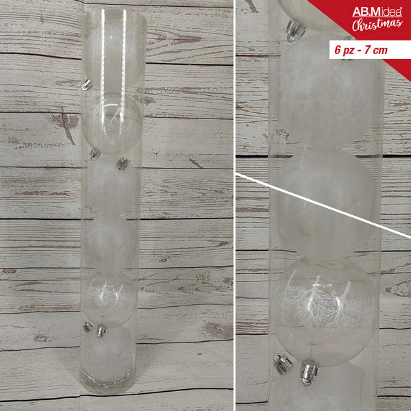 Buis met 6 kerstballen 7 cm – 2 zilveren decorballen