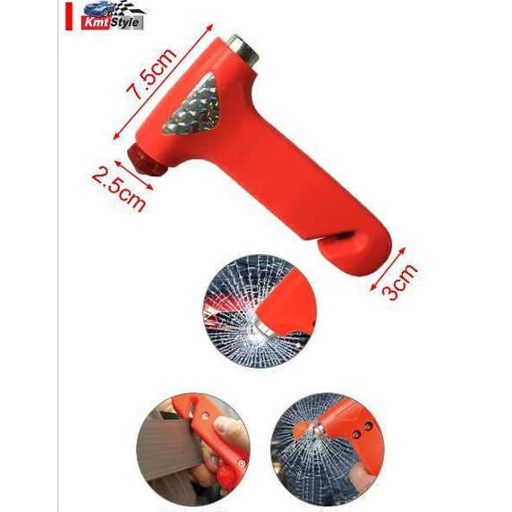 Veiligheidshamer met gordelsnijder en ruitbreker voor noodgevallen. Lees meer