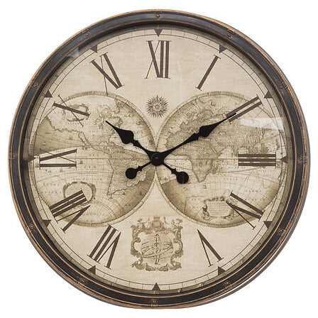 Grote wereldkaartklok in kunststof. Perfect als statement piece in woonkamer of kantoor. Lees meer