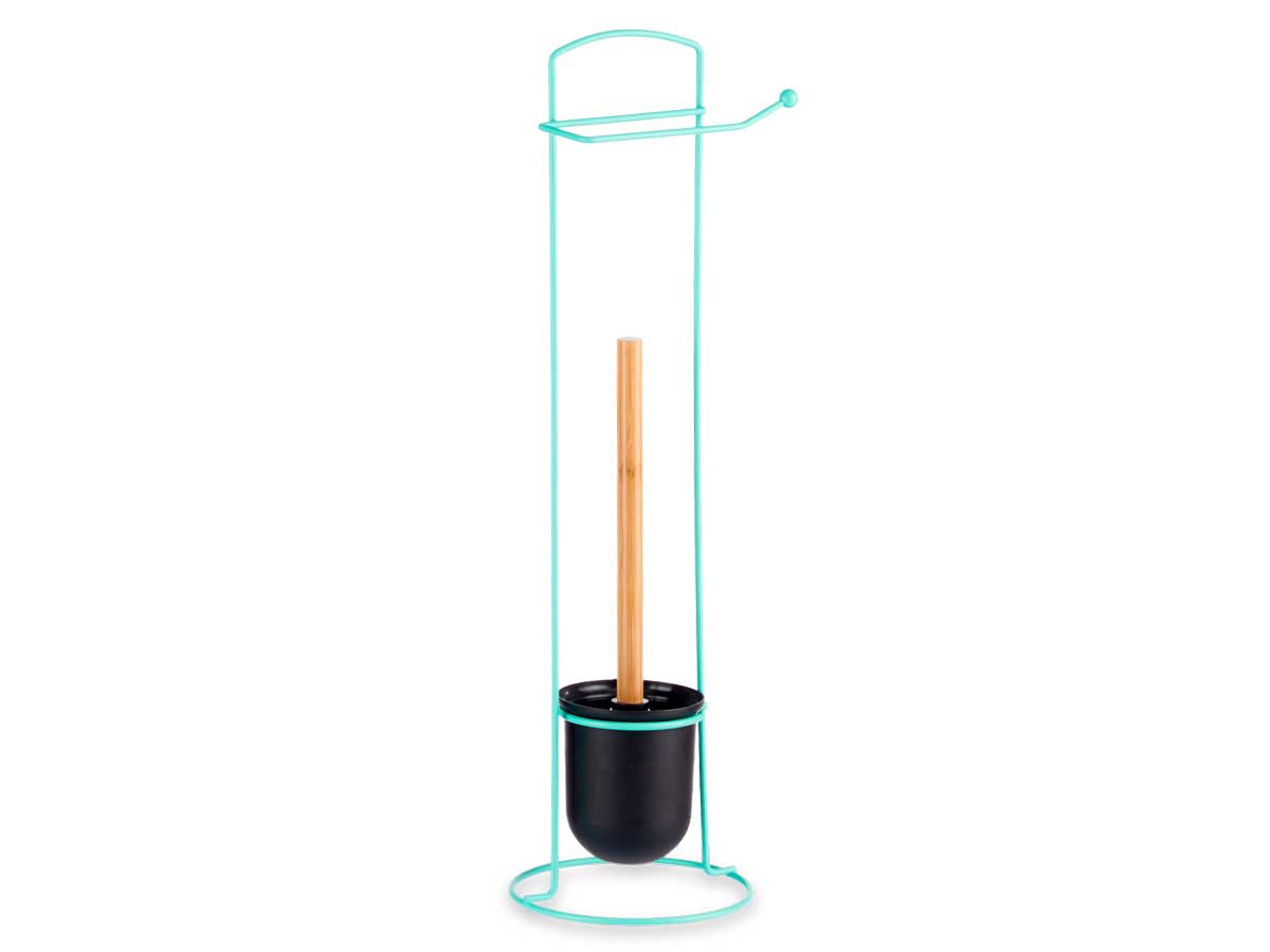 Toiletborstelhouder van metaal met bamboe afwerking in mintkleur. Lees meer