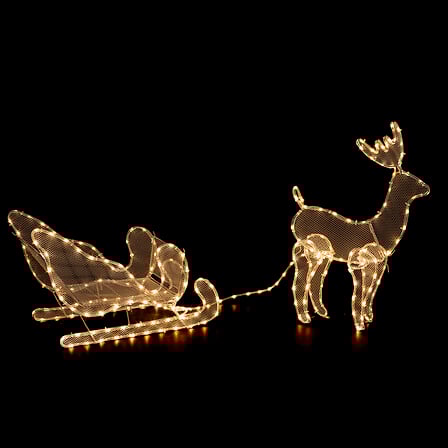 Buitenverlichting in de vorm van een slee en rendier, 154 cm lang met 240 LED’s. Opvallende gevel- of tuinverlichting. Lees meer