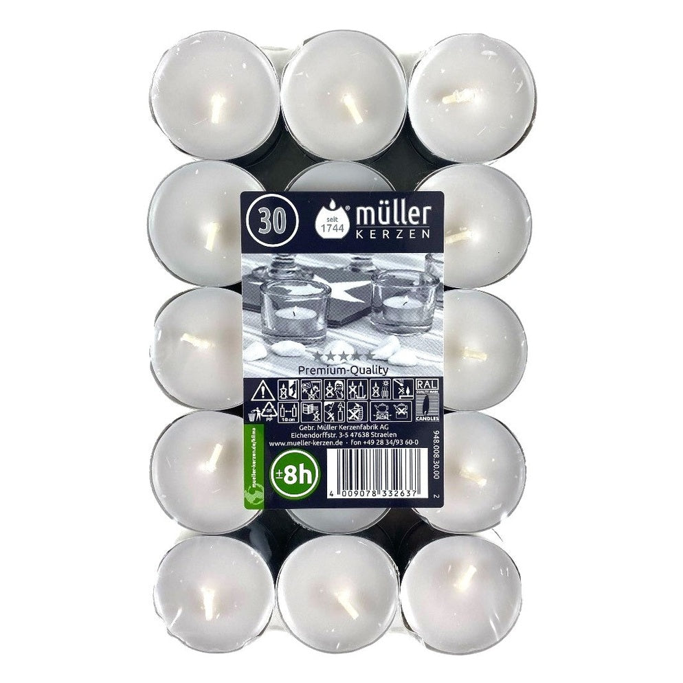 Set van 30 theelichten met 8 uur brandtijd. Ideaal voor sfeer, kaarsdecoratie en dagelijks gebruik. Lees meer