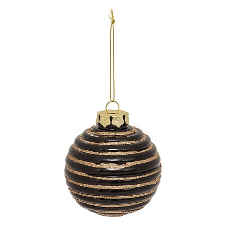 Zwarte kerstbal met gele streep – Ø 8 cm